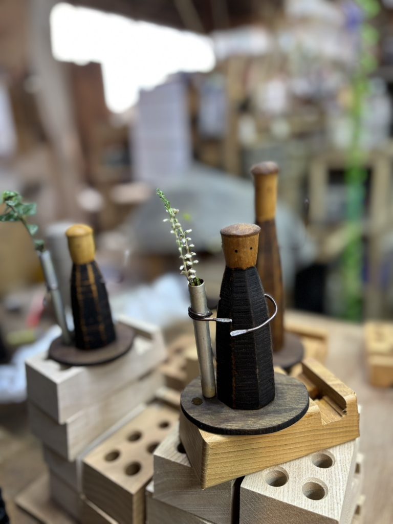 この小さな木の人と一輪挿しも、